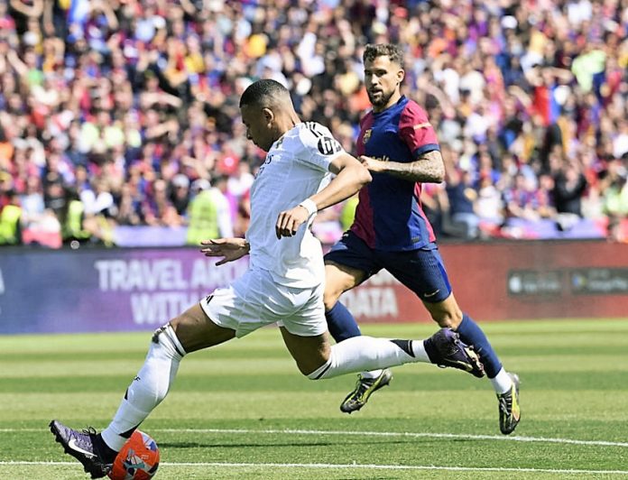 Y el partido empezó con los dos bloques siendo fieles a sus virtudes y debilidades. El Barça desinhibido en ataque, insistiendo en la presión, y a la vez endeble en defensa. El Madrid, en cambio, esperaba su momento con la pegada de Mbappé. Y, en este escenario, una montaña rusa se instaló en Montjuïc, la misma que apareció contra el Atlético de Madrid en las semifinales de la Copa del Rey (4-4) y contra el Inter de Milán (3-3).