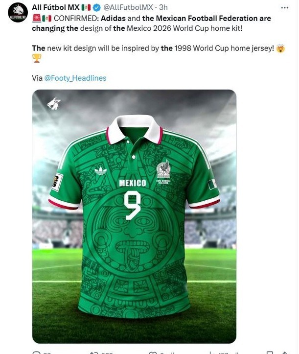 Según información difundida por el portal especializado Footy Headlines, la Federación Mexicana de Futbol y Adidas estarían planeando rescatar el diseño con motivos prehispánicos y un verde intenso que marcó una época. Aunque aún no se han revelado imágenes oficiales, en redes sociales ya circulan bocetos y recreaciones basadas en esta posible inspiración noventera que ha generado nostalgia y expectativa entre los aficionados.