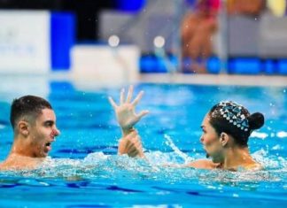 Los seleccionados mexicanos de natación artística, Joana Jiménez y Diego Villalobos concluyeron en el quinto lugar, con 218.8959 puntos, en la final de dueto...
